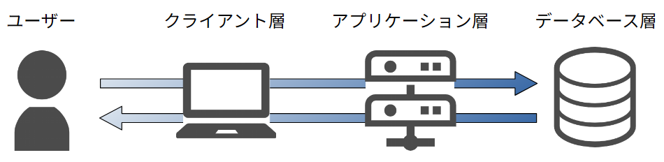 - クライアント層:ユーザーが操作する端末(PC、タブレットなど)