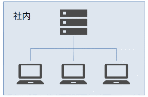 オンプレミス(on-premises)は、自社内にサーバを設置し、社内ネットワークで運用する方式です。